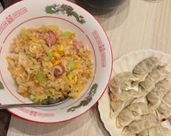 こんばんはあこです🍀 今日のご飯は チャーハンと餃子定食🥟 ぱらぱらチャーハンが1番美味いよね^^ 炊き立てのご飯だとベチャベチャになるから 昨日ご飯多めに作って冷凍ご飯があって助かった〜