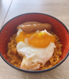 こんにちは! あおいです🐣 お昼にブラダック食った! ピリ辛で美味しかった😋