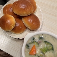 こんばんはあこです🍀 今日のご飯はシチューとロールパン‼️ たまに食べたくなる組み合わせなんだよね〜 パンは袋破るのミスって全部出しちゃった笑笑 もう半分は明日の朝ごはんに回します😌