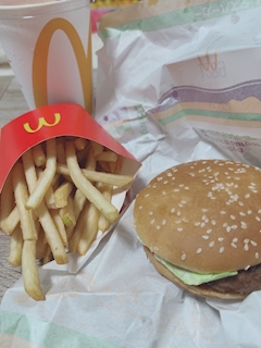 こんにちは! あおいです🐣 だいぶ遅めのお昼ご飯❗️ マックはうまいね〜〜