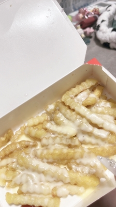 こんばんは! のあです! バーミヤン行った後に業務スーパー行ったんだけど箱のポテトが美味しすぎてリピ買いしちゃった😽💞 電子レンジで作れるからすごい楽🎶 もちろんチーズかけました🧀❣️