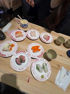 おはようございます!💡 昨日もありがとうございました!🎀 引越しのお手伝いした日の夜ご飯! この後もめちゃくちゃ食べました🩵🩵 友達に言われて気づいたんだけど、 わたしはとっっても海老が好きみたい(笑)(笑) いつもノーマルのエビと えび天にぎり、炙りチーズって 3種類はマストで頼んでるらしい(笑)(笑) 気づいてなかった^^🎶 だーーーいすきなお寿司食べれて幸せでした⭐️