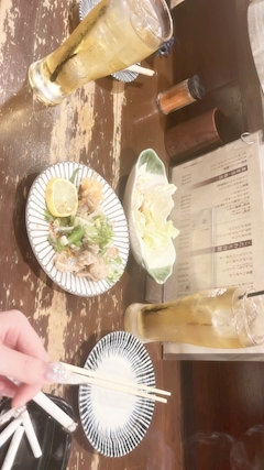 こんばんは! あおいです🐣 のあちゃんと焼き鳥🦆 うますぎ😋