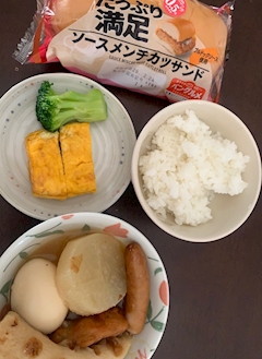 今日の朝兼お昼ご飯だよ🥺 自分でも思うけどすごい組み合わせだな笑