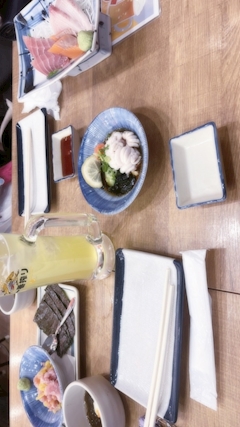 きゅけ!! のあちと休憩被ったので またまた二人で磯丸🥹🥹 夜はあおいちゃんと3人で ラーメン行こうねって言ってるから いつもよりかは少なめ😸 ホタテのお刺身はじめてたべた! いつもバター焼きとかにしちゃうから 新鮮でおいしかったー!⭐️⭐️⭐️ もうちょい厚めのが美味しいねって ふたりで話してた(笑)(笑) 夜もがんばりま!🫶🏼🥹