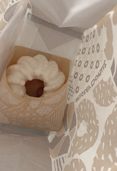 ミスドのいちごみるくあんフレンチクルーラー出てたから買ってみた🍩🍓🥛 くどくない甘さで食べやすい😳