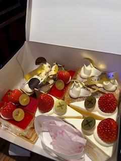 あきなです🎀 退勤しました! 本日もご来店ありがとうございました😊 お客様がケーキを持ってきてくれました♡ ピスタチオと苺のケーキ食べた✨🍓 みんなでワイワイお話し楽しかったです🙌 今日のハイライトは、信州の珍味を食べたことです!またこれは別のブログで載せます🙂↕️ ローソンのお得すぎる福袋いただいた💕 お菓子、カップ麺たくさん入っててすごい!カップ麺助かる〜✨✨✨✨✨ ありがとうございました😊