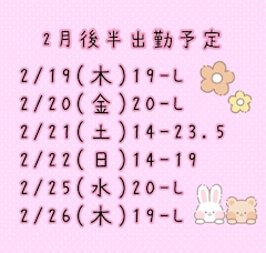 あきなです🎀 2月後半の出勤予定を貼っておきます📅 頑張ります✨✨
