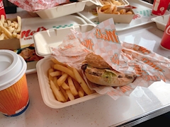 ユニバで食べてたやつ載せる〜 ハンバーガー美味しすぎた🍔 ポテト頼みすぎて腹パン🍟 レモン風味のチュリトス🍋 テーマパーク来たら絶対チュリトス食べたくなる笑 甘いのにレモンの味もするのがちょっと新鮮で良かった🤤