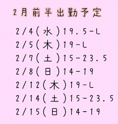 あきなです🎀 シフトでたので載せます✨ 2月もよろしくお願いします✨✨🎶