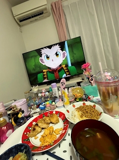 こんにちは! のあです! HUNTER × HUNTER見ながらちょっと早めの夜ご飯食べてます🌙*゚