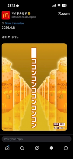 こんばんはあこです🍀 マックのベーコンパイ食べました? 美味しそうで食べたいけど マックまで買いに行くのめんどくさくて なかなか買いに行けない😌 終わる前には絶対食べる