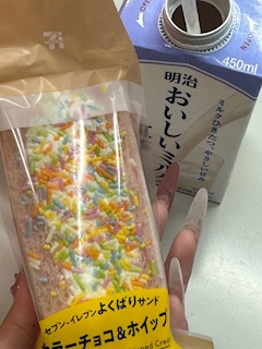 こんばんはあこです🍀 みんなはセブンの話題サンドイッチ食べました?? 生クリームのかわいらしいサンドイッチなんですけど 自分には生クリームの圧に負けてしまったので ブラックコーヒーと一緒に飲むとベストですね