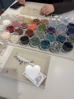 こんばんは🌛 ブレスレット作り中の1枚 ⭐️⭐️ わたしは青色メインで、 友達はピンクメインで作ってみました🫶🏼🫶🏼