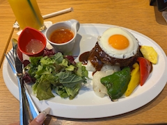 こんばんはー!みゆです! 今日はカフェで お昼ご飯食べたの! ロコモコ丼! お腹いっぱい・・・(՞ o̴̶̷̤ ̫ o̴̶̷̤ ՞)