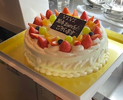 こんばんは🌉 そらです🌈 今日はあきなちゃんのお客様から4周年のお祝いケーキを頂きました🍰 凄く大きくてふわふわなホールケーキ! 思わず写真撮っちゃいました📷 フルーツケーキ大好きなのでとても有り難く嬉しかったです♫ 本当にいつもありがとうございます😌