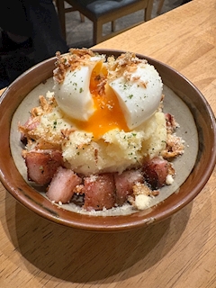 こんばんは🌛 2品目はポテサラ! 勝ち確のビジュアルみてってください〜〜 ゴロゴロのベーコンがさいっっっこうに おいしかったです(>_<)💖💖