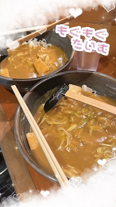 こんばんは!しのです💖 出勤報告出来てなかったー🥲 出勤したよー🩵 お昼はたーーくさんお話して 歌も歌って 超楽しかったーーー💖 れいなちゃんとカレーうどん食べに来た❤︎❤︎ れいなちゃんと毎回休憩被るの 本当に嬉しいの! これが土曜日出勤の楽しみ!(笑) また後でね〜ー💖